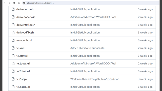 Todd R. Hanneken, “TEI 2 Edition.” GitHub, 2024. https://github.com/thanneken/tei2edition/.